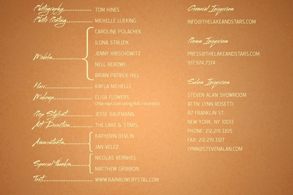Candela H&M & Other Stories Nylon Sub Rosa Marie Claire Loeffler Randall The Lake & Stars Katie Gallagher Proenza Schouler Urban Outfitters Project Runway Gossip Girl Safe Warp Records Bodkin Lorick OPI Foley & Corinna Rebecca Turbow Samantha Pleet Daffy's Grizzly Bear WNYC Violens Sony Records |